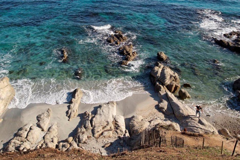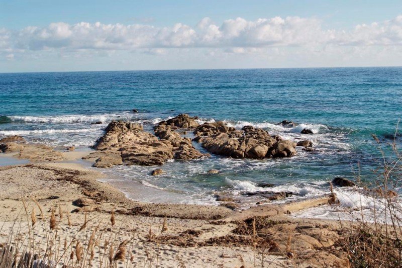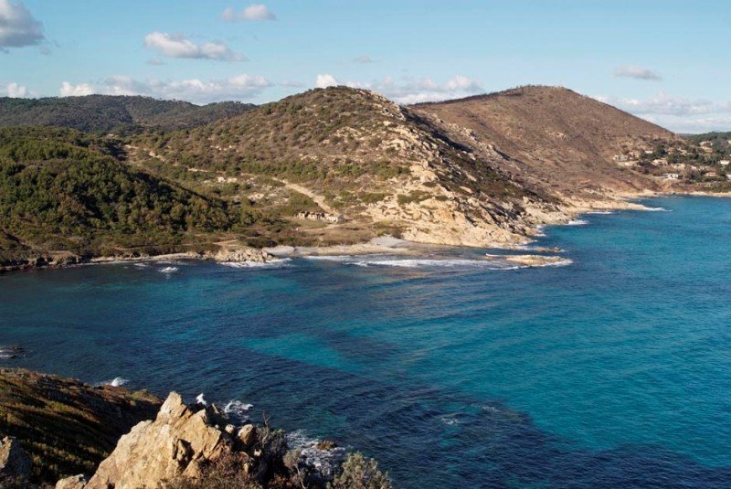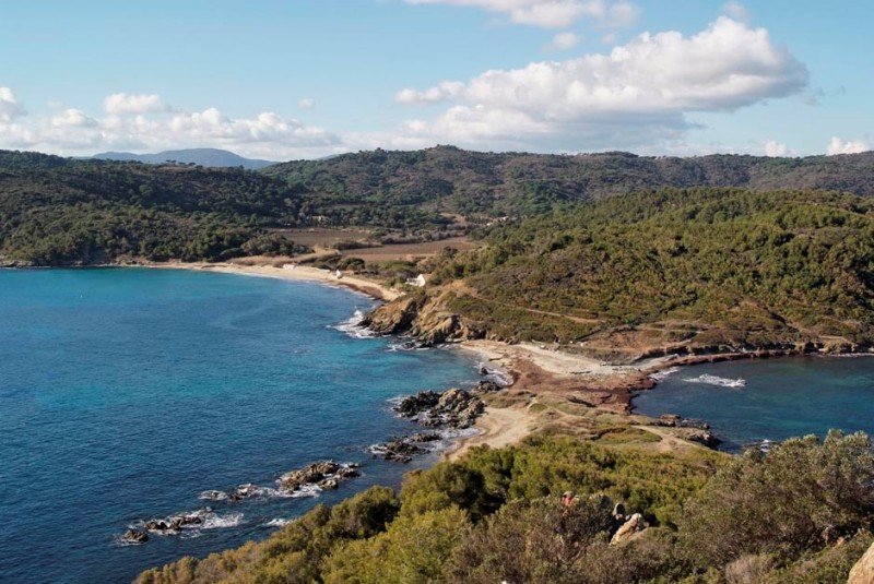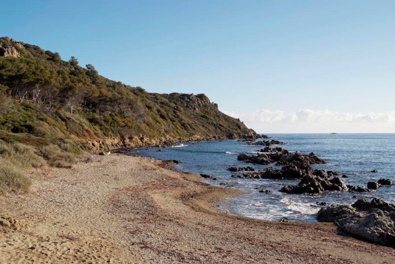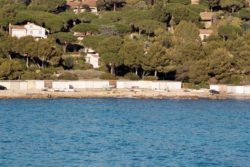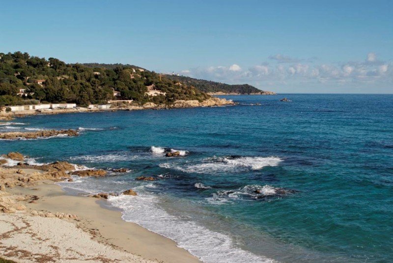 Escalet Cap Taillat Blick auf EscaletAnfahrt über Ste. Maxime, La Foux, St. Tropez und die Route des plages (D93), die an der Ampel in St. Tropez rechts abzweigt. Nach der Abzweigung nach Ramatuelle (rechts) kommt links die Abzweigung nach Escalet. In Escalet liegt gegenüber dem Strand ein Parkplatz.