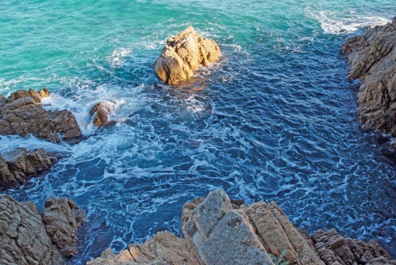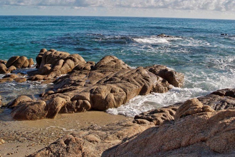 Escalet Cap Taillat Blick auf Bastide Blanche und StrandDer Weg von Escalet zum „Cap Taillat“ führt durch ein Naturschutzgebiet an der Küste mit bizarren Steinformationen entlang. Die Dauer der Wanderung hängt davon ab, ob man auch das Cap Taillat bis zum Cap Cartaya einschließt.