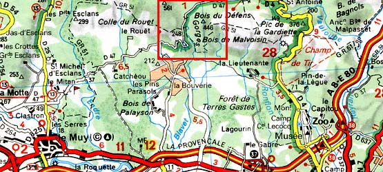 Anfahrt Michelin Karte 84. Für die Wanderung empfiehlt sich die Karte Nr.3544 est (Frejus St.Raphael) vom Institut Geographique National.