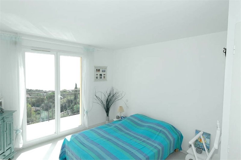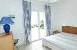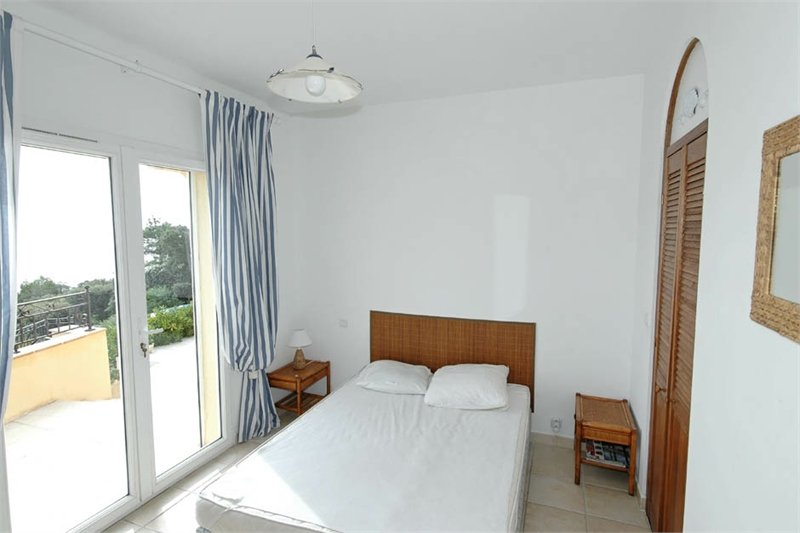 Beide Schlafzimmer im Erdgeschoß haben französische Betten (beide 1,60 m breit), Meerblick und einen Ausgang auf die Terrasse. Das Hauptschlafzimmer hat ein großes Bad mit Wanne und Dusche, zwei Waschbecken und Toilette. Das zweite Schlafzimmer hat ein Bad mit Waschbecken, Dusche und Toilette.