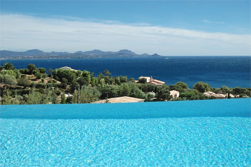 Villa Ligurienne in Les Issambres an der Cote d'Azur in Südfrankreich-Blick auf den Golf von Frejus an der Cote d'AzurDer Golf von Frejus wird im Norden vom Esterel Gebirge geschützt. In diesem Gebiet gibt es wunderschöne Wanderwege. Drei davon haben wir für Sie ausgewählt: Den Weg zum Gipfel des Pic du Cap Roux, die Wanderung durch die Mal Infernet Schlucht und den Weg vom Cap Roux. Am Golf liegen St. Raphael, Frejus, St. Aygulf und Teile von Les Issambres.