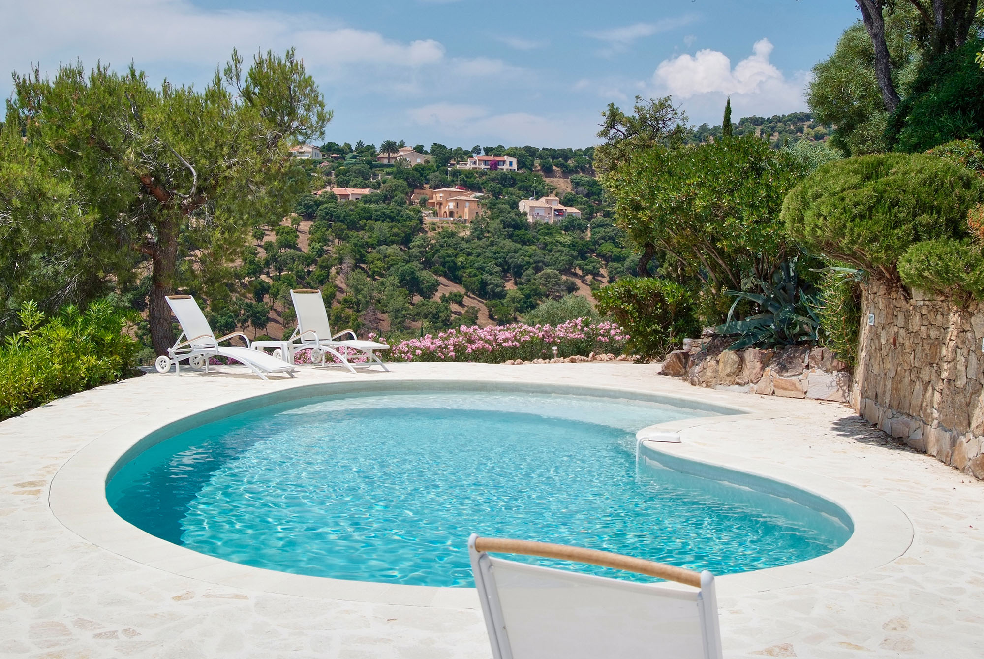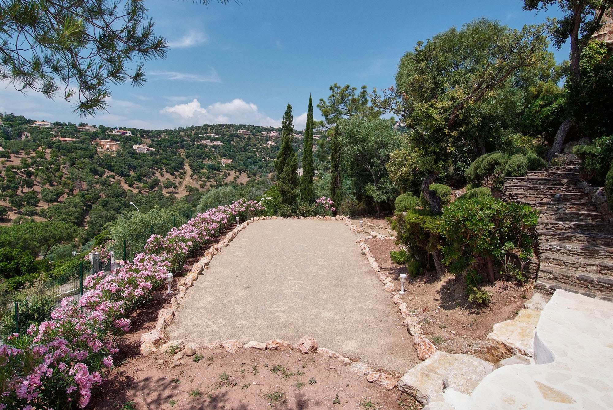 Der Stil des Hauses, die fabelhafte Aussicht auf den Golf von St. Tropez von der Terrasse und vom Pool, der eigene Bouleplatz.