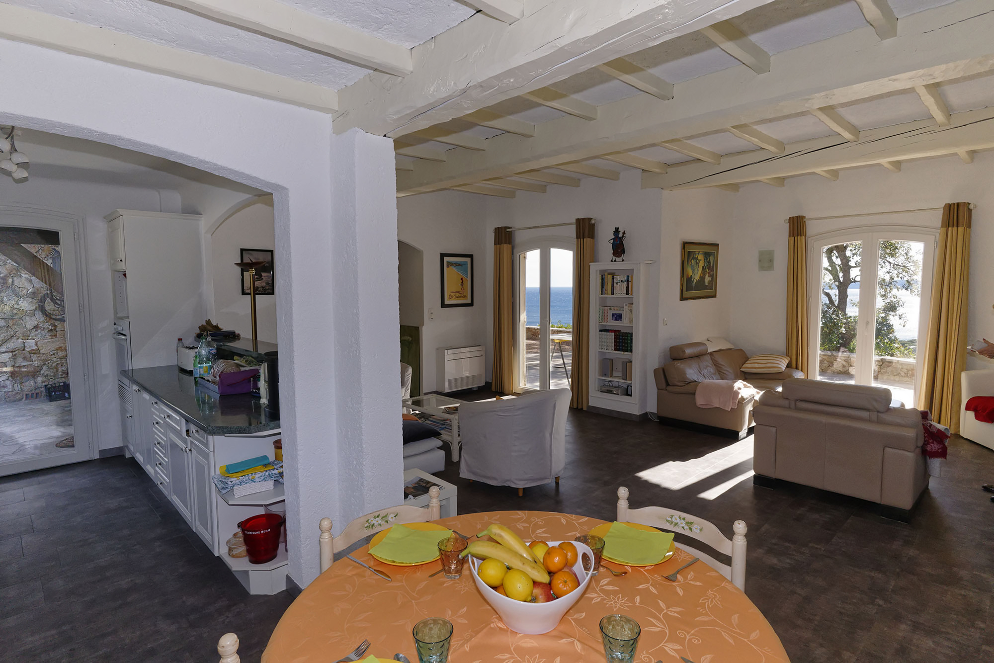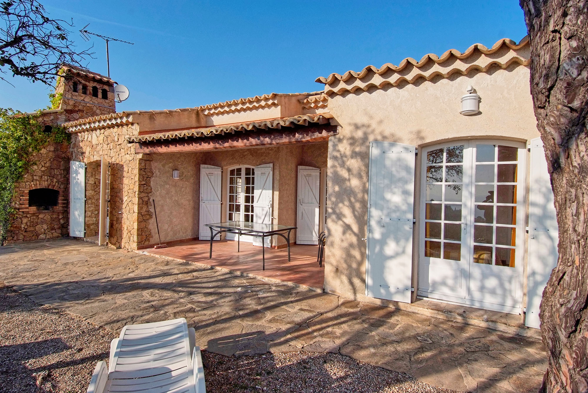 Das Haus Pastourelle in Les Issambres ist ein hübsches Einfamilienhaus im provenzalischen Stil mit fabelhafter Aussicht auf den Golf von St. Tropez. An der Decke des Wohn- und Essraums sind die Balken sichtbar – wenn auch nicht ganz dem provenzalischen Stil entsprechend in weisser Farbe, Teile der Aussenmauern sind mit Naturstein verkleidet. Es liegt in einem ruhigen Viertel auf den Hügeln von les Issambres. Das Haus hat einen Pool, einen Bouleplatz und eine fabelhafte Aussicht auf den Golf von St. Tropez von der Terrasse (und auch vom Pool) auf der Gartenseite. Die Gartenseite ist nach Süden ausgerichtet. Die Terrasse hat von morgens bis abends Sonne. Im unteren Teil des abgeschlossenen Gartens liegen der Pool und der Bouleplatz. Grundstück: 1200 qm. Internet. Ab 2020 hat das Haus eine reversible Klimaanlage.