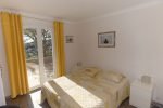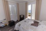 Pastourelle überdachte TerrasseDer Schlaftrakt des Hauses liegt auf der linken Seite. Er besteht aus drei Schlafzimmern und zwei Bädern. Eines der Schlafzimmer (10 qm) hat ein französiches Bett (160 cm breit) und Wandschrank. Ein Schlafzimmer (9,80 qm) mit Doppelbett und zwei Matratzen (160 cm breit) sowie ein Schlafzimmer mit französischem Bett (140 cm breit) und Wandschrank. Zwei Schlafzimmer haben Meerblick, eines davon hat eine Klimaanlage. Ein Bad mit Dusche und Waschbecken. Ein zweites Bad mit Dusche, Waschbecken, WC. Eine getrennte Toilette.