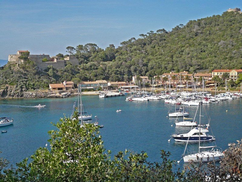Port Cros Hafen und FortDer Nationalpark „Port Cros“ bietet verschiedene Wanderwege in einem natürlichen Umfeld ohne menschliche Eingriffe. Restaurants und Übernachtungsmöglichkeiten gibt es nur im kleinen Hafen der Insel. Camping, angeln, Blumen pflücken, rauchen und die Mitnahme von Hunden sind verboten. Es gibt zwei Badestrände.