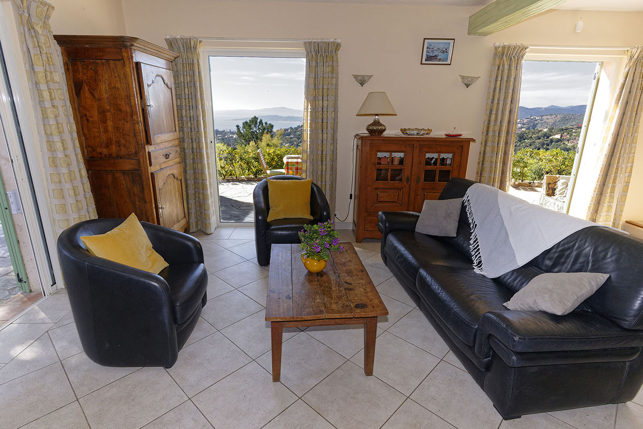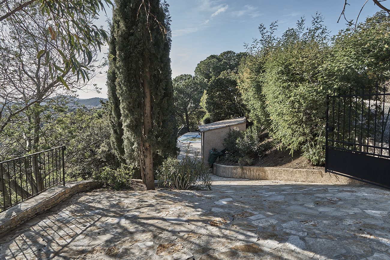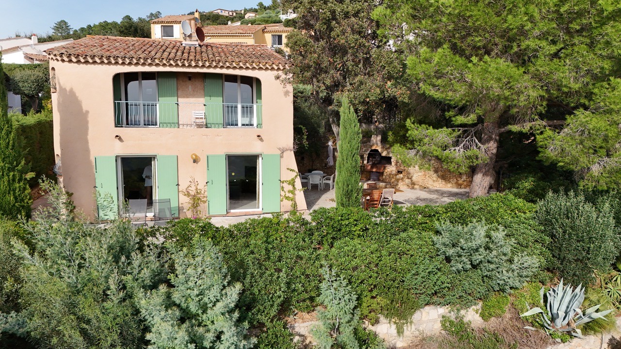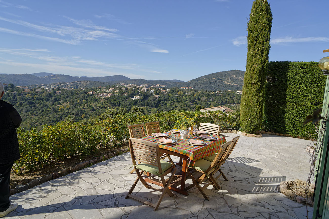 Große Aussichtsterrasse mit schönem Blick auf den Golf von St. Tropez. Heizbarer Pool.