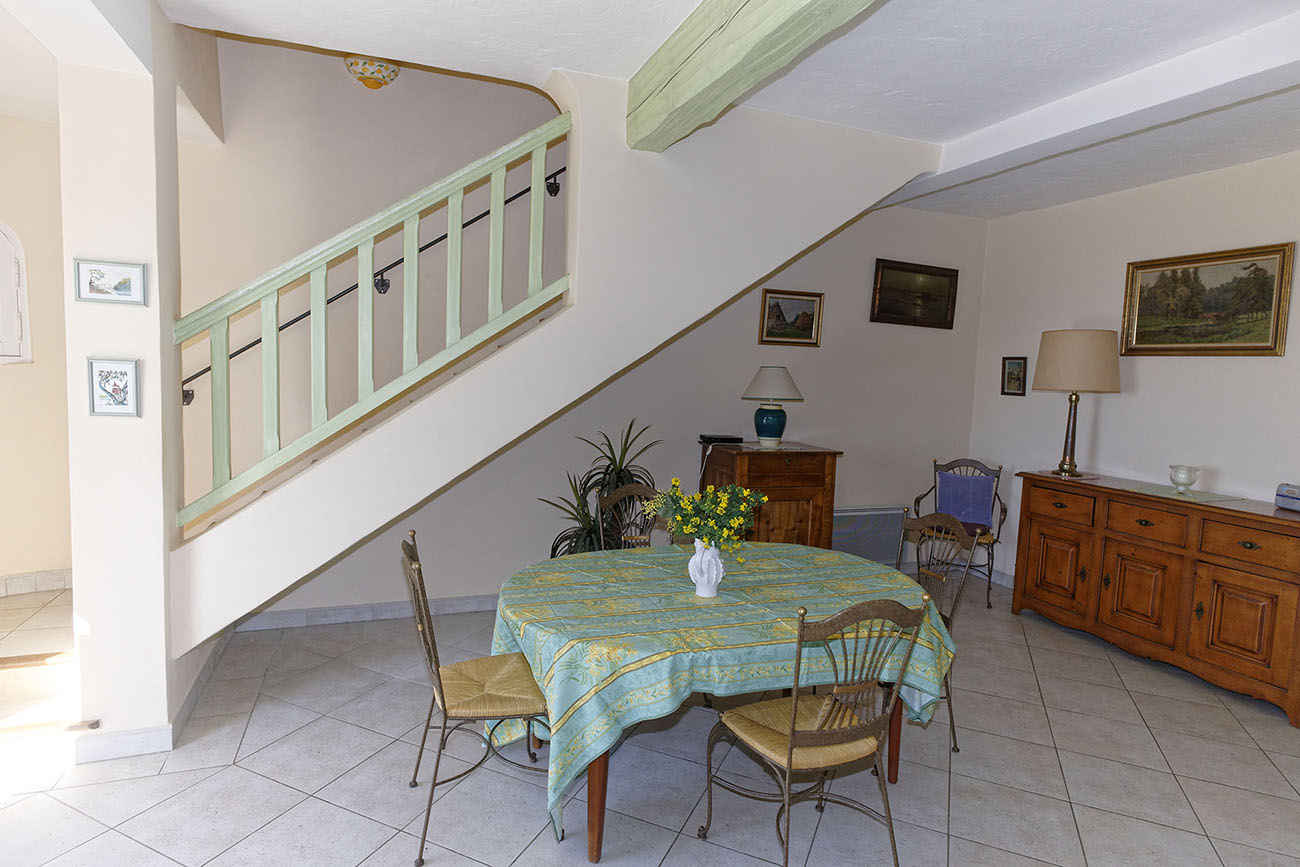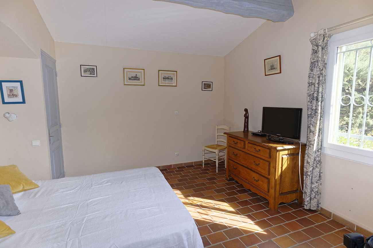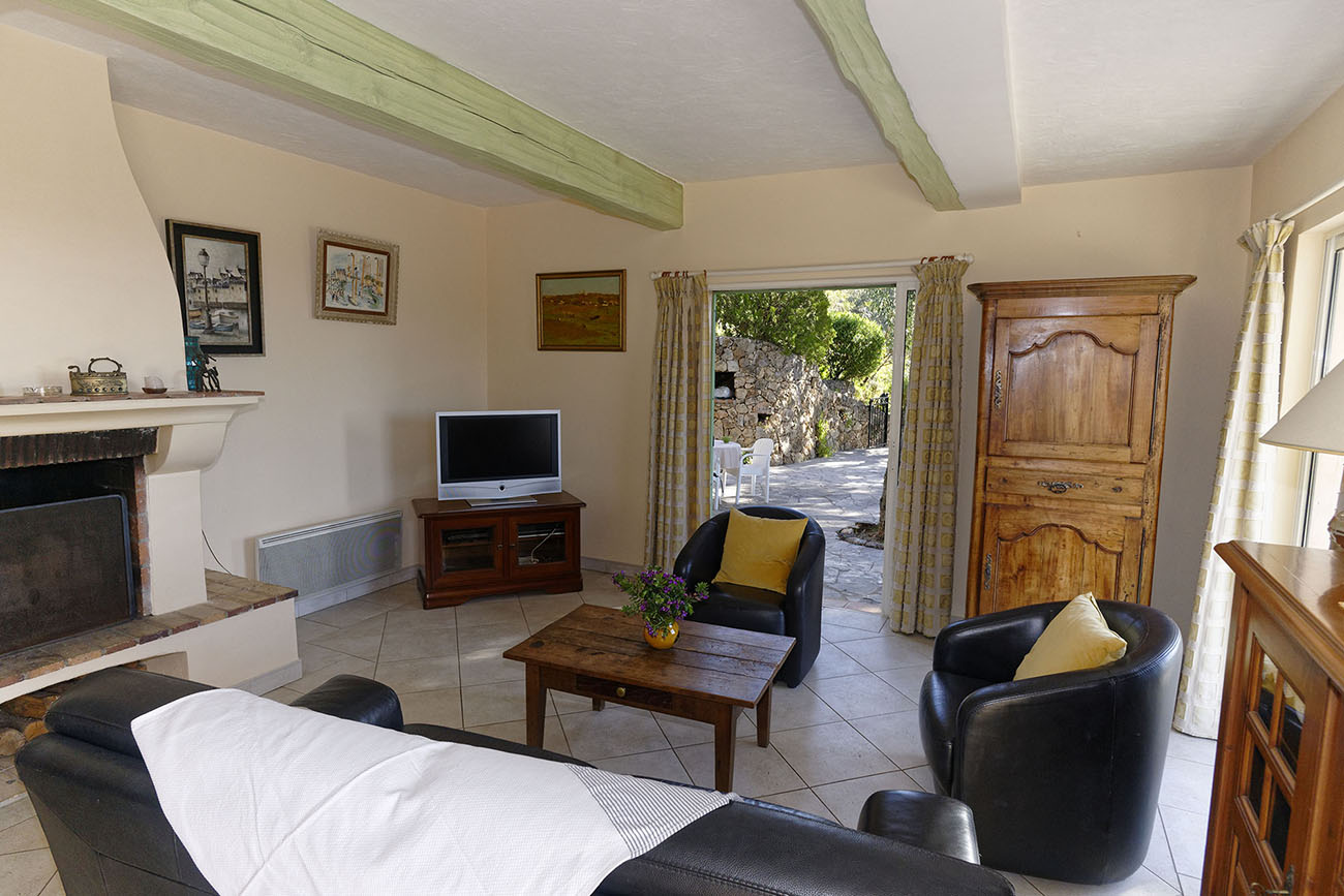 Ricoulette TerrasseAuf der Gartenebene liegt ein großes Wohnzimmer mit Kamin, Sat-Fernseher und Hifianlage, Sitz- und Essecke, das sich auf die große Terrasse mit Steinplatten und Grill sowie den Garten öffnet. Die Küche ist mit Spülmaschine, Mikrowelle, Kochfeld, Backofen, 3 Kaffeemaschinen (Filter-, Espresso-, Nespresso-) und amerikanischem Kühlschrank ausgestattet. Sie öffnet sich ebenfalls auf die Terrasse und den Garten. Waschküche mit Waschmaschine und Tiefkühltruhe. Auf dieser Ebene liegt auch ein Schlafzimmer mit 2 Betten (je 0,90 m breit) und Ausgang auf die Terrasse. Dazu gehört ein Bad mit Dusche und getrennter Toilette.