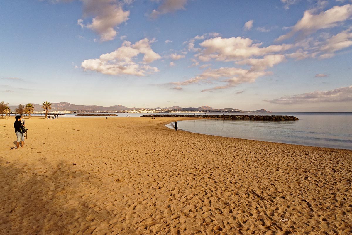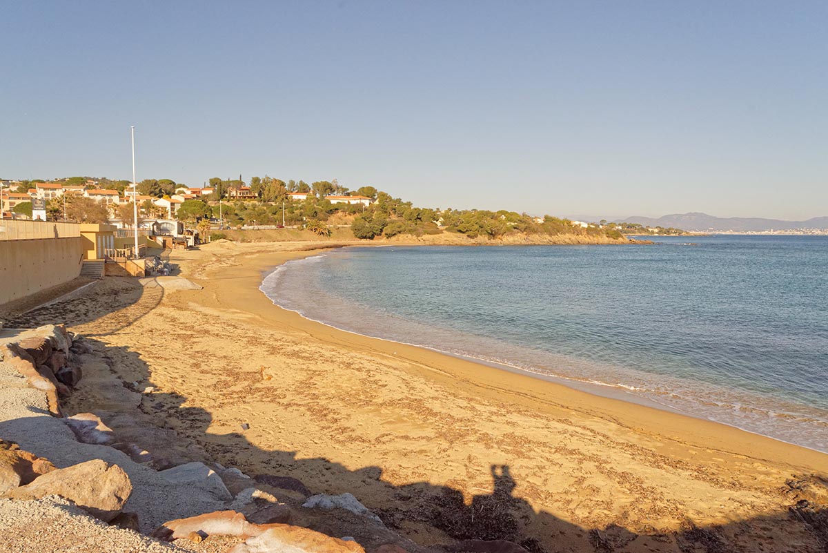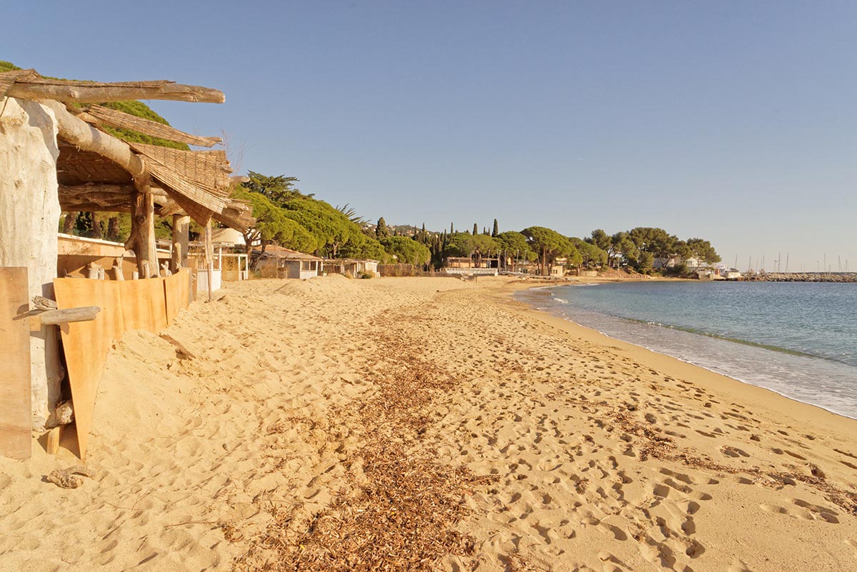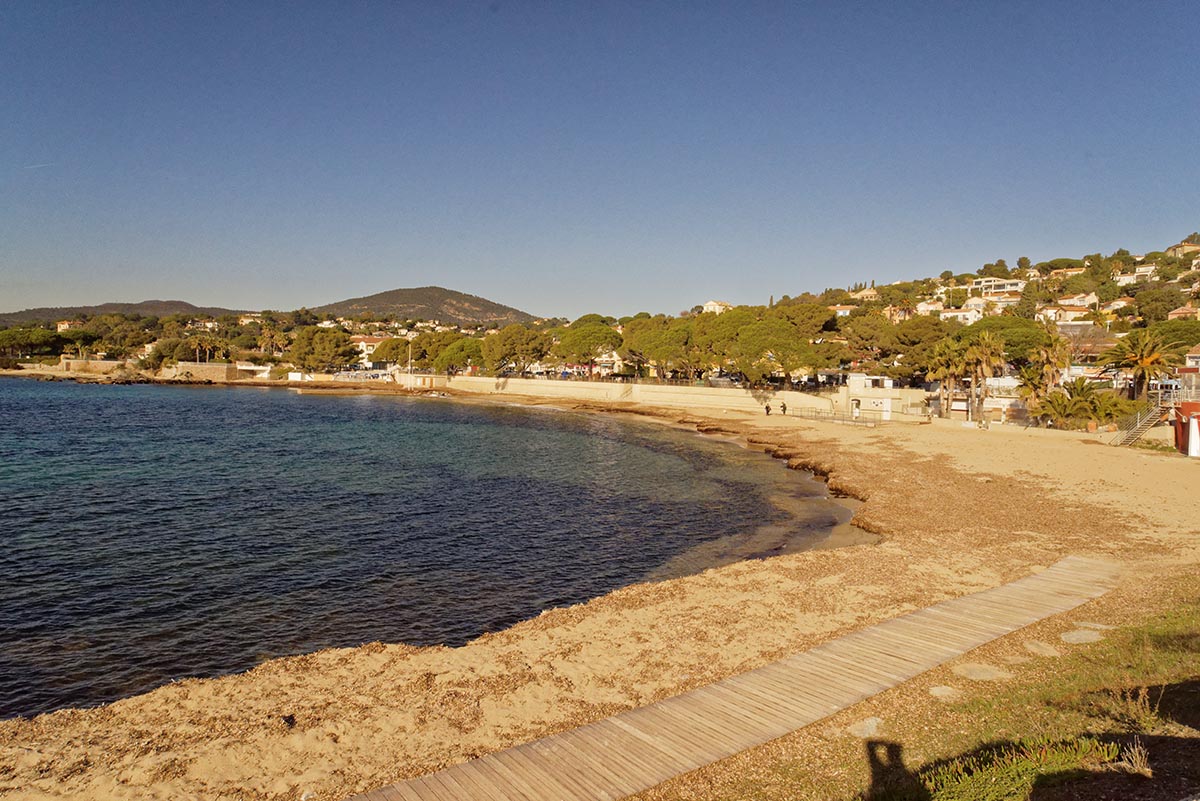 Die Lage einiger Strände und Buchten ist in der Karte mit rotem Text markiert. Der große Strand von St. Aygulf liegt ca. 2 km weiter nördlich. Bis auf Calanque de Bonne Eau, Girelier, die Ostseite von San Peire und Sardineaux sind die abgebildeten Strände Sandstrände. Privatstrände mit Restaurant gibt es an der Gaillarde, bei Peiras, Garonnette, an zwei Stränden vor la Nartelle und an der Nartelle. Klicken Sie auf ein Bild zum Start.