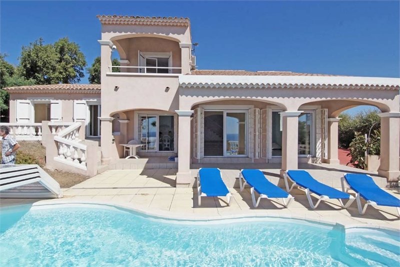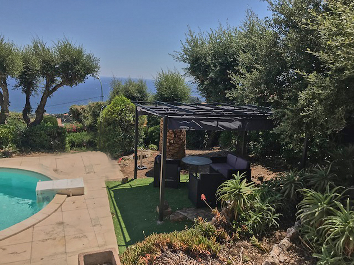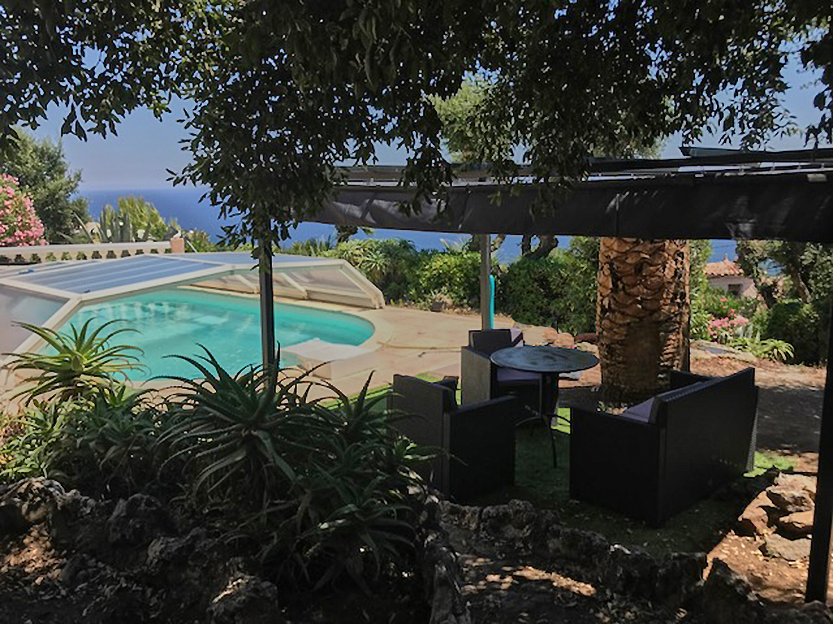 Sehr ruhig auf einem der Hügel gelegenes, alleinstehendes Haus mit Panorama-Meerblick, Pool (8 m x 5 m), großer Terrasse und zwei Balkonen. Drei Schlafzimmer und zwei Bäder. Garage und Stellplätze auf dem Grundstück. Sat-TV, Gasgrill.